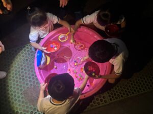 夜の幼稚園で過ごすこの「夕涼み会」は、年長さんだけが体験できる特別な行事です。友だちや先生と一緒に過ごした夏のひとときは、きっと心に残る大切な思い出になったことでしょう。
