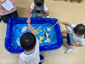 金魚すくいのように“ほい”を使って挑戦しましたが、水の中であっという間に破れてしまう子もいれば、平均で5〜6個ほど取る中、なんと15個もすくった子も!歓声が響き渡りました。