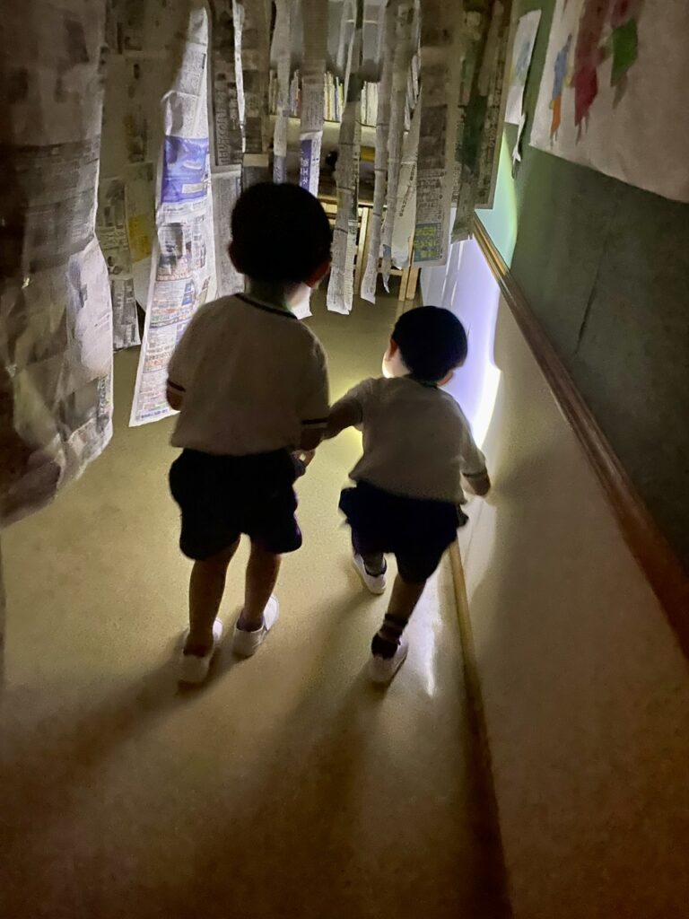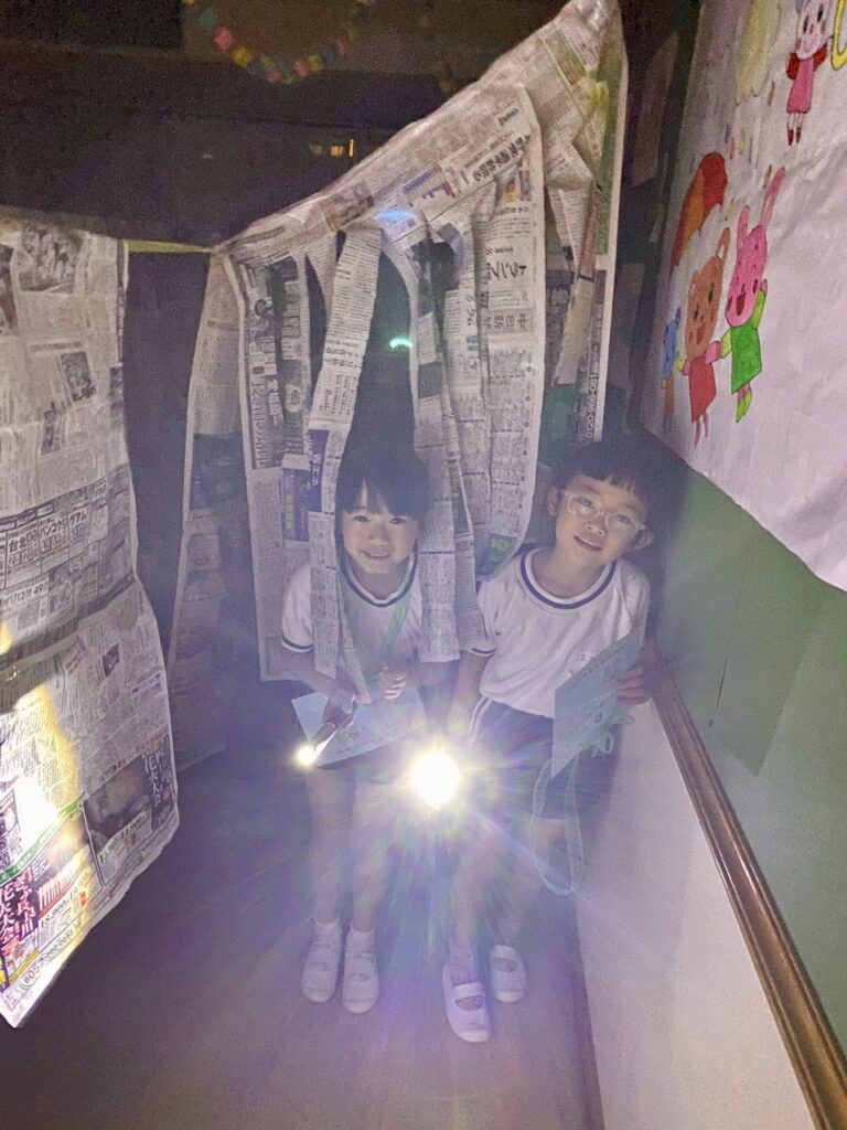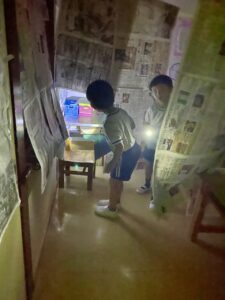 懐中電灯を片手にゴールを目指す子どもたちの姿には、ちょっとした探検家のような勇ましさも感じられました。何度も同じ道に迷い込んでしまう子や、ドキドキしながらも一歩ずつ進む子…それぞれの挑戦に成長を感じられるひとときでした。