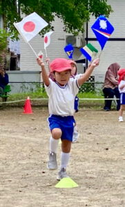 かけっこでは、力いっぱいゴールをめざして走る姿。