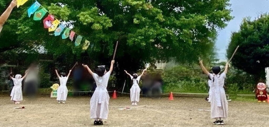諏訪幼稚園では、園の伝統として運動会に「剣舞」を行い日本文化を大切にしようと「剣舞」を続けています。
