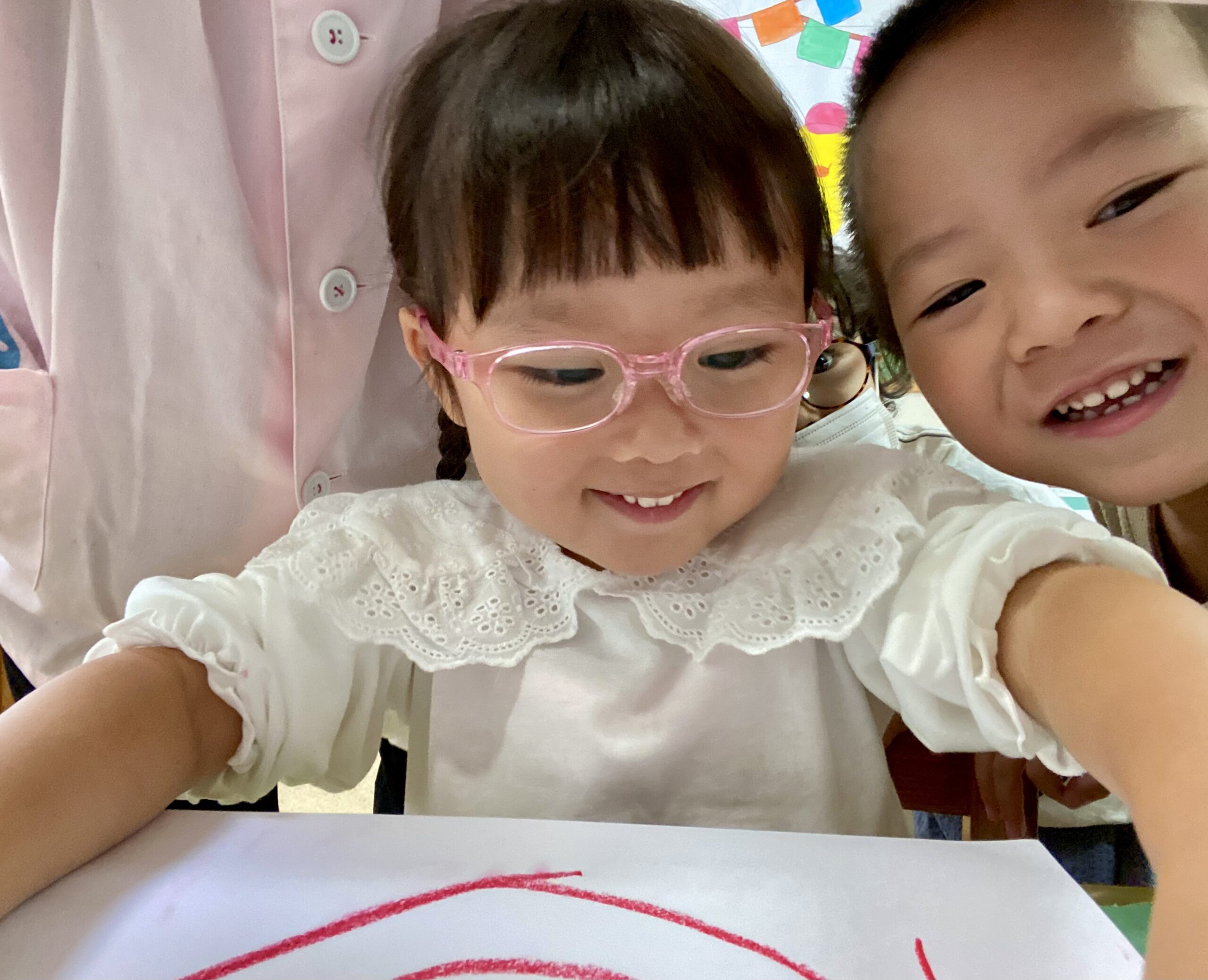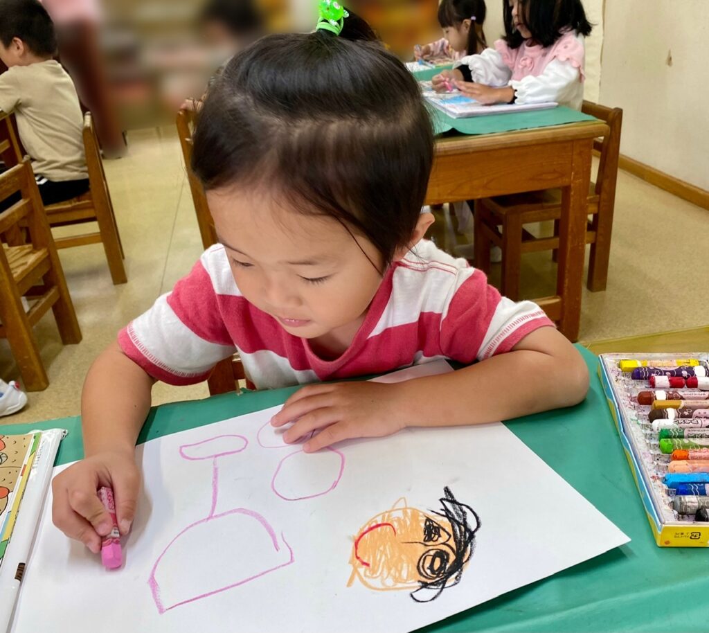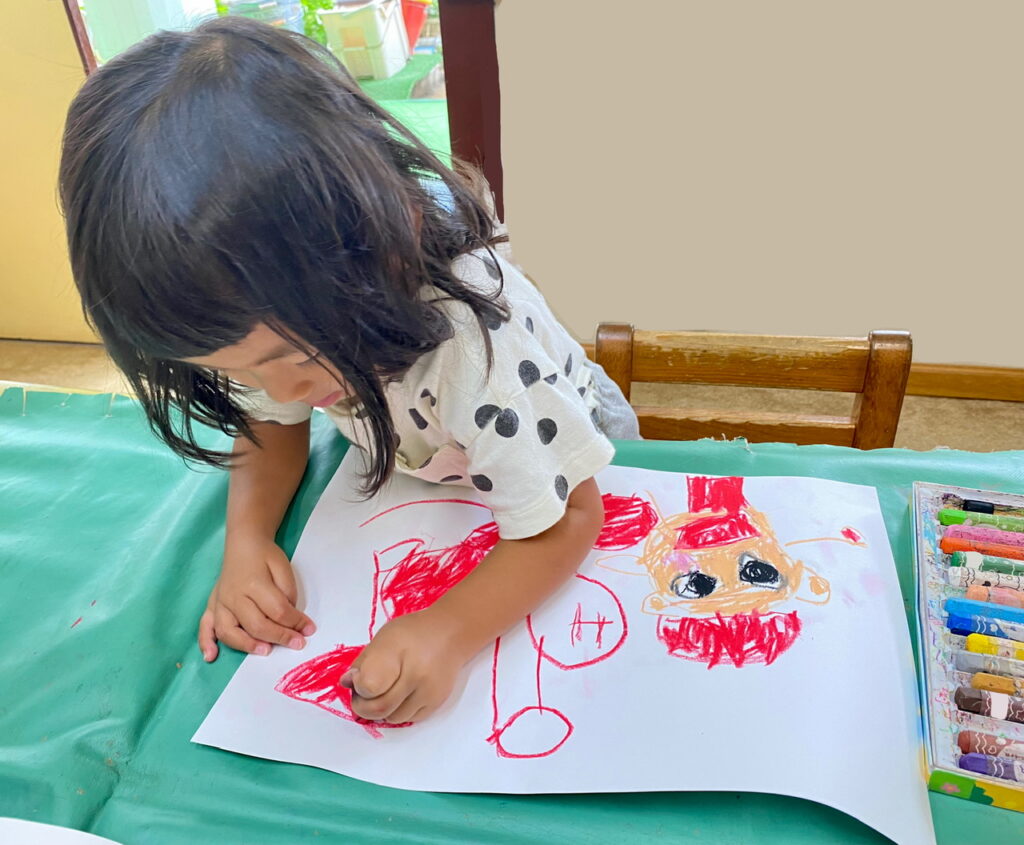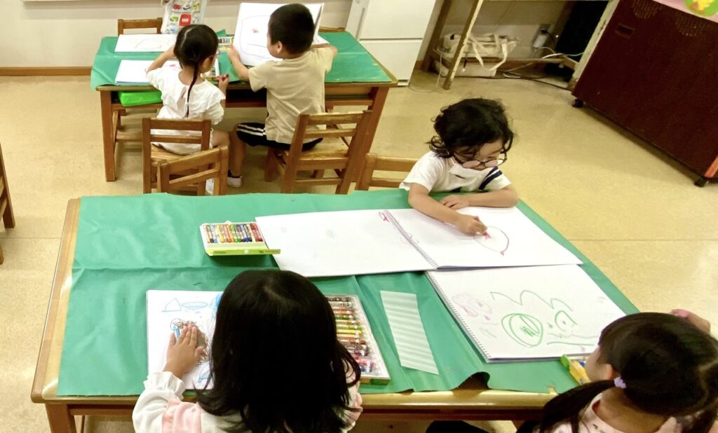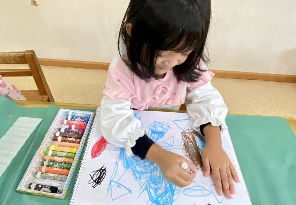 年少組さんたちが、今日も楽しそうにクレヨン遊びをしています。