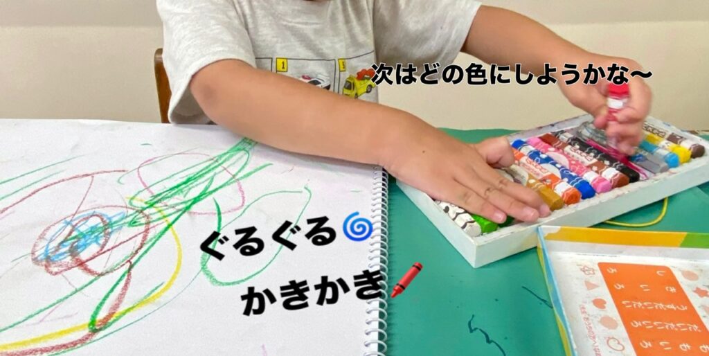 1歳半~3歳頃には、なぐり描き期とかスクリブル期と言われる大切な時期。