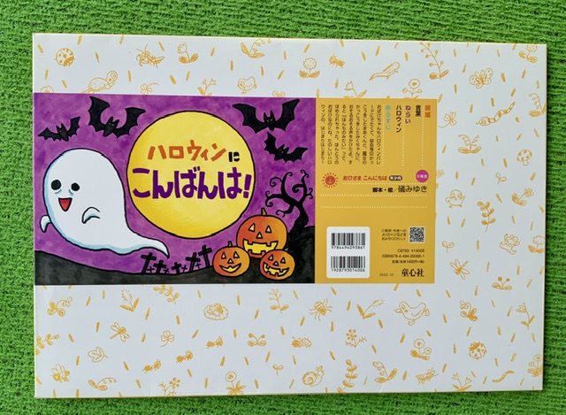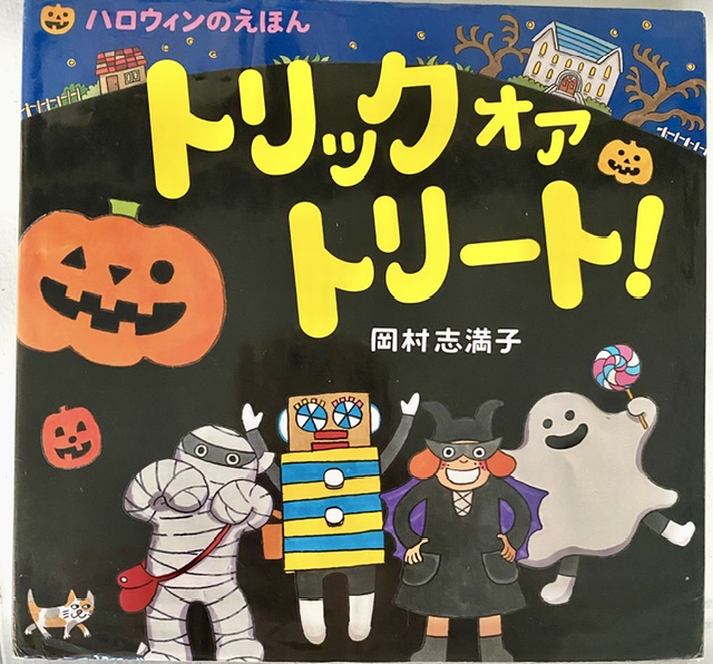 はじめに、ハロウィンの紙芝居「ハロウィンにこんばんは!」脚本・絵磯みゆき 童心社や、絵本「トリック オア トリート!」岡村志満子作 を子どもたちは楽しみました。