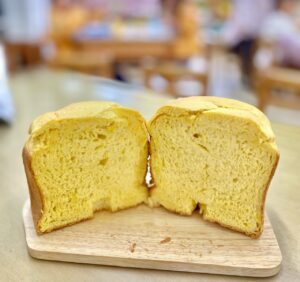 白い皮のカボチャの品種「白九重栗(しろくじゅうくり)」をつかった、カボチャ食パンです。