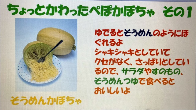 「そうめんかぼちゃ」や「おもちゃかぼちゃ」など、