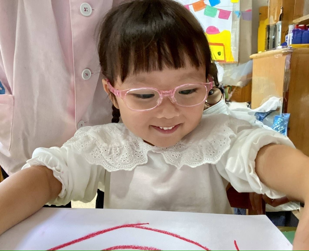 年少組さんたちが、今日も楽しそうにクレヨン遊びをしています。
